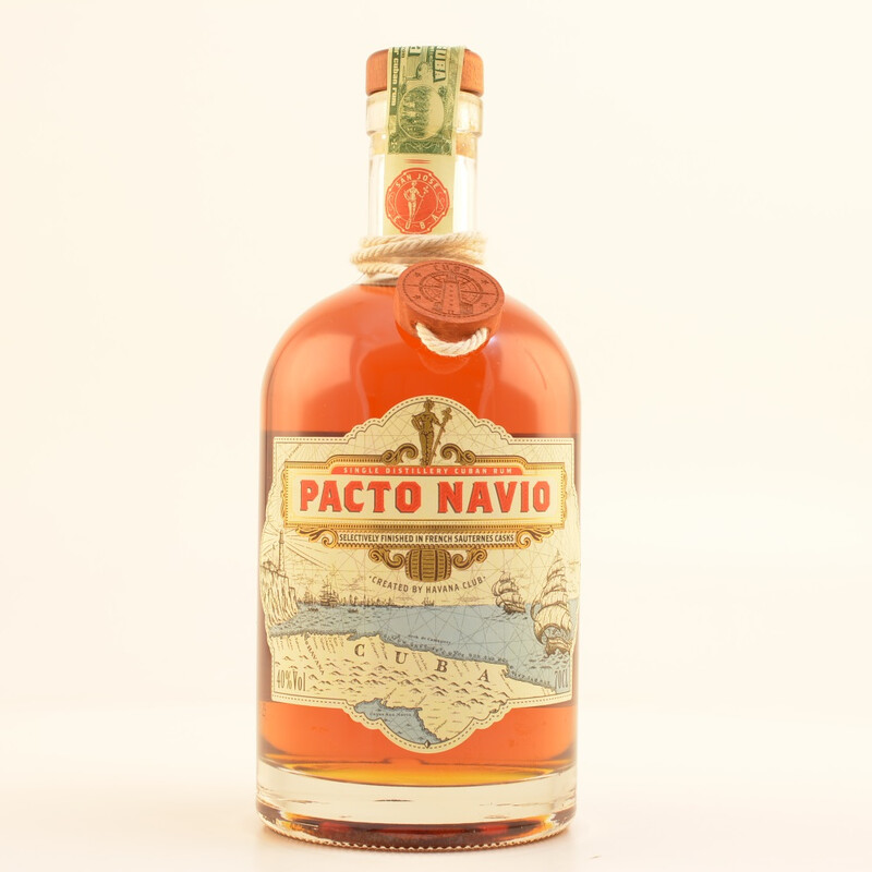 Seit Ende 2016 darf man sich auf eine aufregende Neuheit aus dem Sortiment der renommierten Firma Havana Club freuen. Der mit Spannung erwartete Havana Club Rum Pacto Navio soll das historische Erbe der alteingesessenen, weltberühmten Marke verkörpern und Kenner auf der Suche nach exzellentem Premium-Genuss verlocken. Der dunkle Rum aus Kuba ist der ganze Stolz der Maestros Roneros des renommierten Betriebs und sollte in aller Ruhe pur genossen werden. Die goldenen Akzente der Produktpräsentation unterstreichen sein luxuriöses Flair und seine Exklusivität.